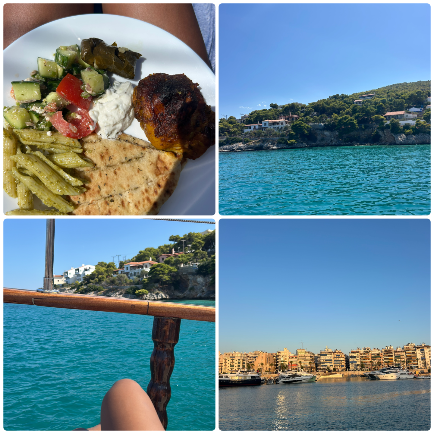 I had a Sunday off, and I felt like an ‘Asha day’, my version of self-care days, was calling. I wanted to do something a little out of my comfort zone and slightly challenging, so I booked a last-minute boat trip to visit three nearby islands. I’m talking 10 hours with a bunch of strangers, completely alone, spending the entire day exploring solo. The idea sounded fun, but still a little scary. When I tell you, I had the best day ever. It was easily a highlight of my trip to Greece. One thing about me, I love sailing and cruising the ocean, especially in rocky, rough water. It’s my inner adrenaline junky coming out. I arrived at the harbour and somehow got the best seat, feet dangling off the side. The sea was so rough that you could barely stand. People kept asking why I was alone, and my answer was always ‘Why not?’. We visited Agistri, Aegina, and jumped off the boat near Moni. So much fun, even if getting back up the ladder was a struggle, haha. I read in the sun, explored, sipped wine, and felt exactly how I needed to feel.
